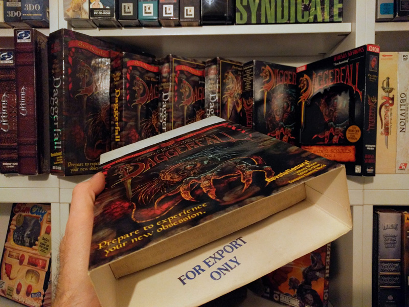 Another copy of Daggerfall? Jep! This time, it's the US version that was distributed here in Europe before the localized versions were ready, hence the big fat "For Export Only" stamp on the inside of the sleeve cover.