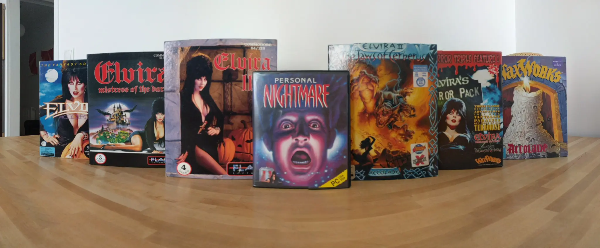 In regard of fidelity, 687 out of the 1,009 boxes have all six sides scanned. I'm working on adding more but this comes down to finding the time needed for scanning and editing. There's also 78 boxes with a gatefold cover that can be flipped open by double-clicking the box. Also, 132 boxes do have specific textures for their reflectiveness. It's a subtl effect but IMHO worth all the work, just look at Morrowind or Beneath a Steel Sky.