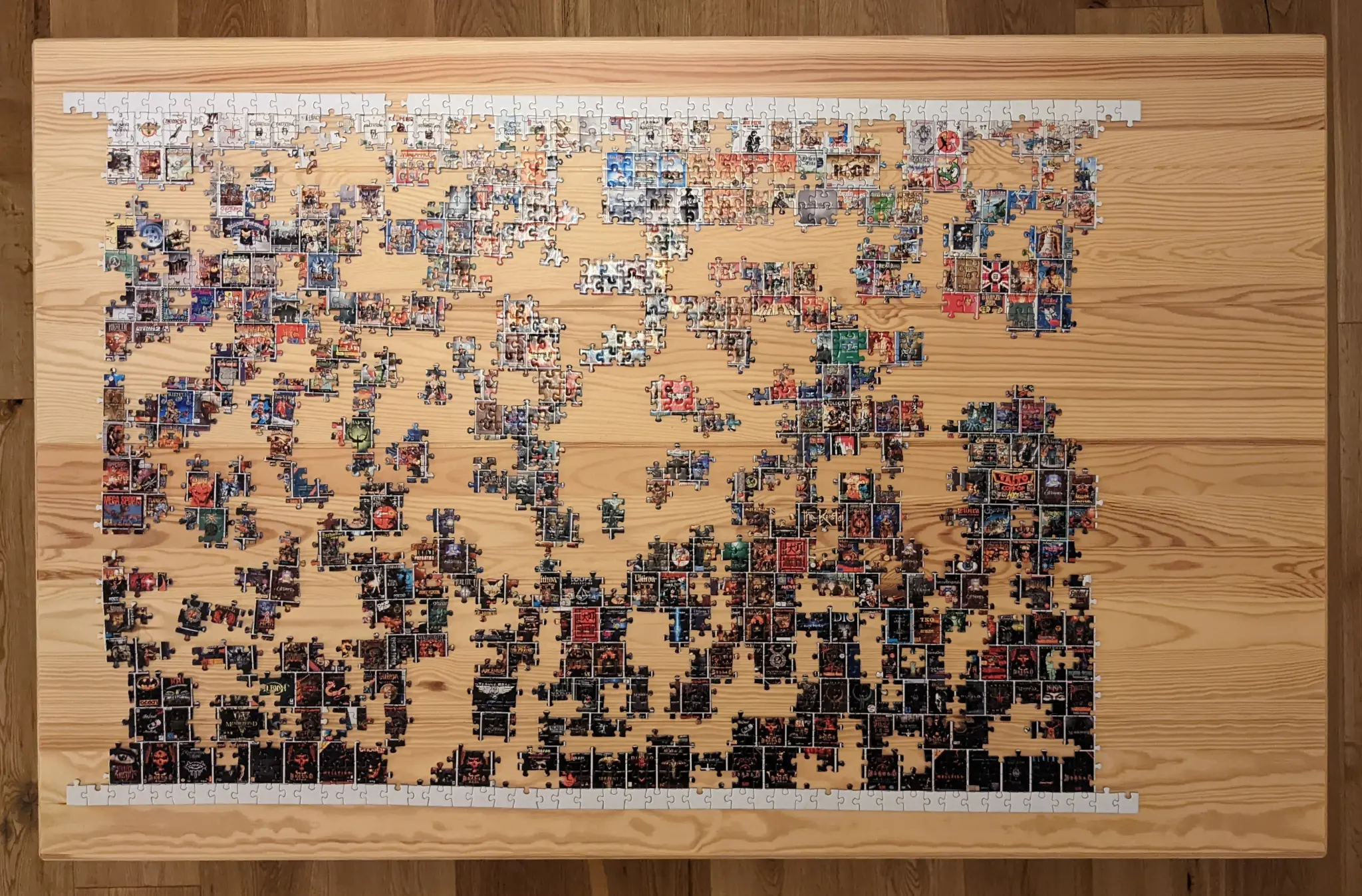 A 207 megapixel panorama of the shelf behind me taken in October 2021. There's no real order to the games on the shelf, except grouping some series. Why? It keeps browsing fun, even for me when looking for a specific box. Further, bigger boxes (e.g. US releases) are in the top, while the standardized Euroboxes fit in perfectly in the lower rows. The wall is 3.6m x 2.28m x 0.2m (bottom row 0.4m) and — you've guessed it — it's all IKEA (Bestå)