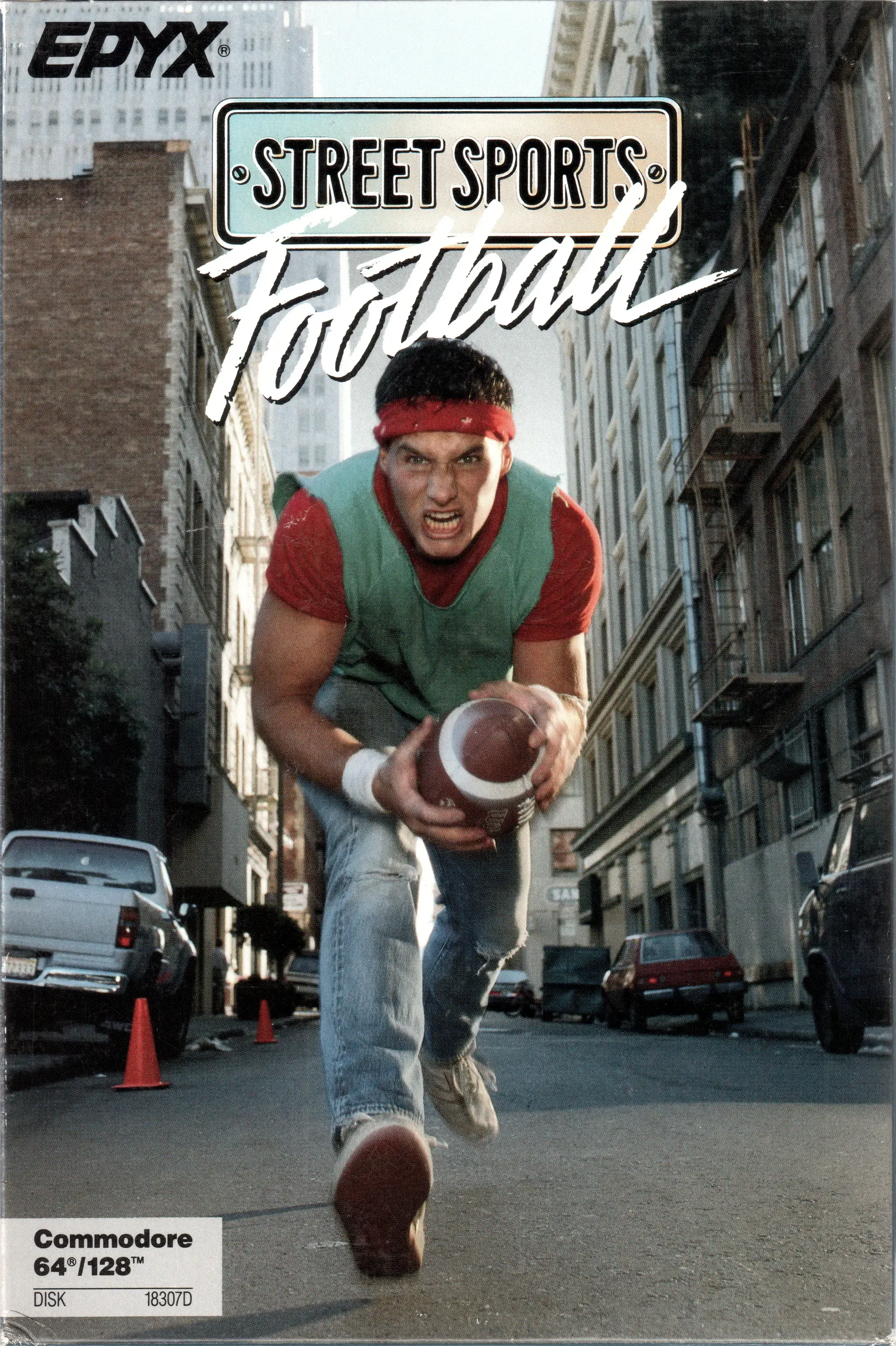 Photo of the content of Street Sports Football (1988, C64, US); developed by K-Byte; Ogdon Micro Design, Inc., published by Epyx, Inc.; Hi-res 3D box available at https://bigboxcollection.com