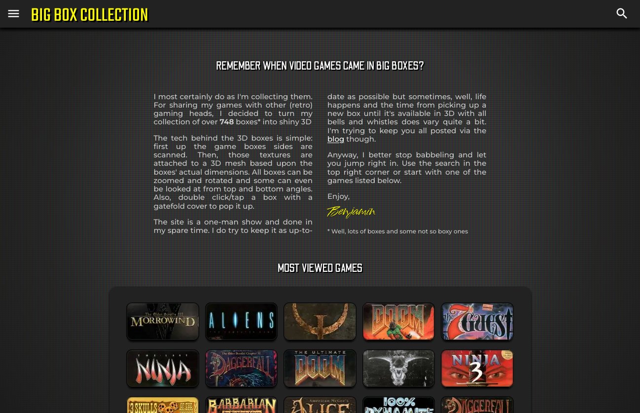 BigBoxCollection.com has now over 1,000 games available as high-res 3D models waiting to be explored